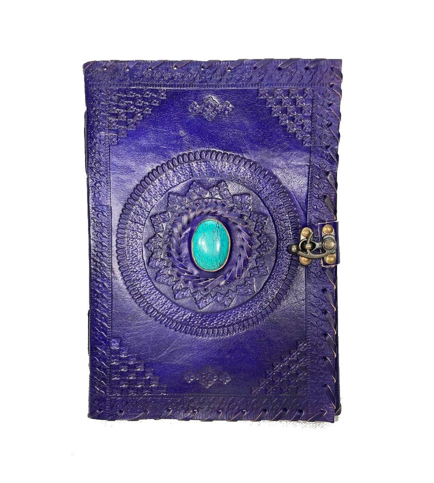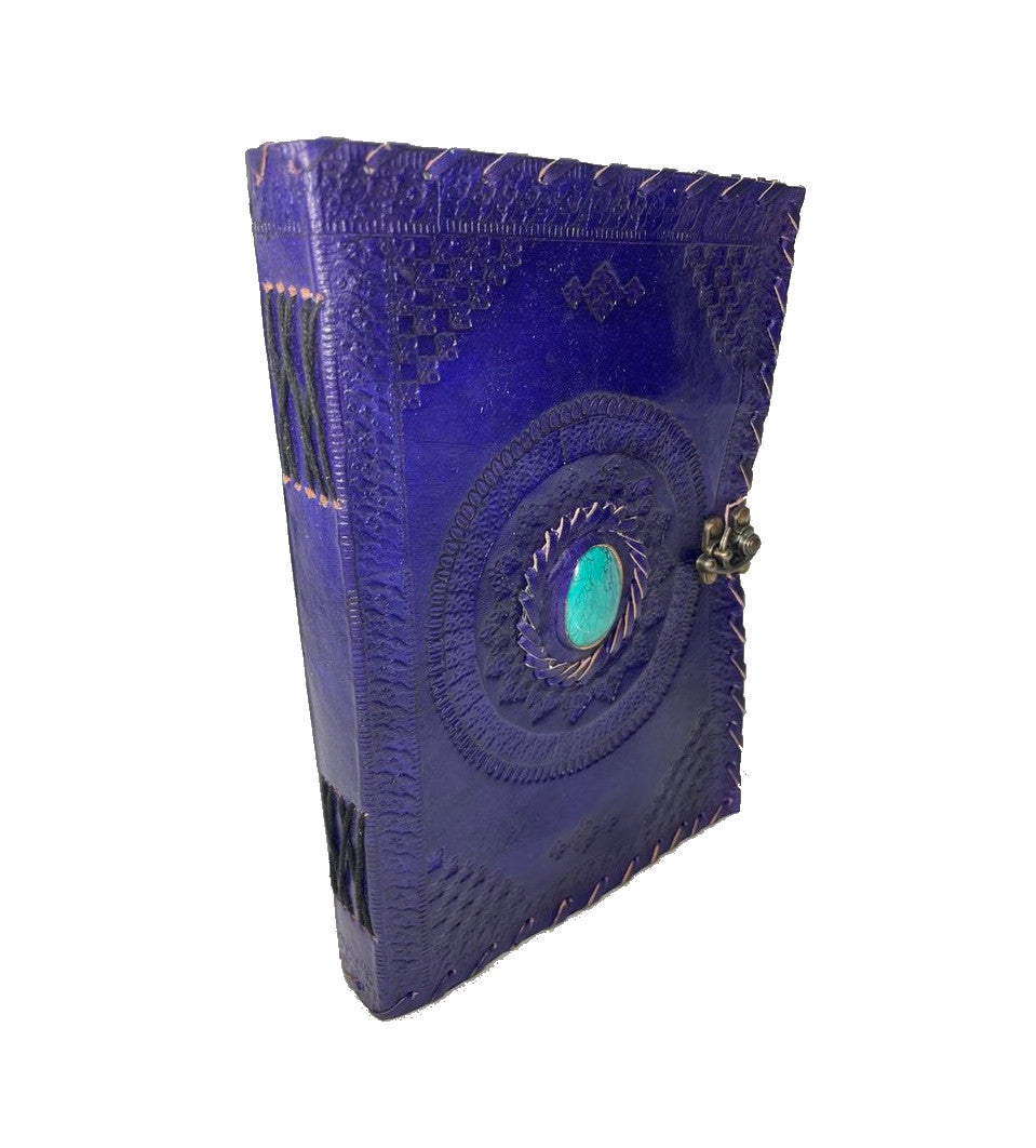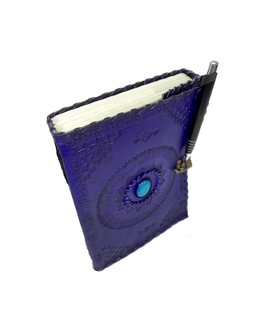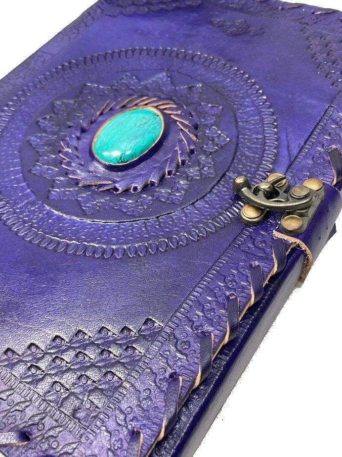 Discover the refined elegance of our handmade notebook or sketchbook with a leather cover in deep violet and a striking turquoise marble stone in the center of the front cover – a truly unique product we lovingly call "Blue Eye."