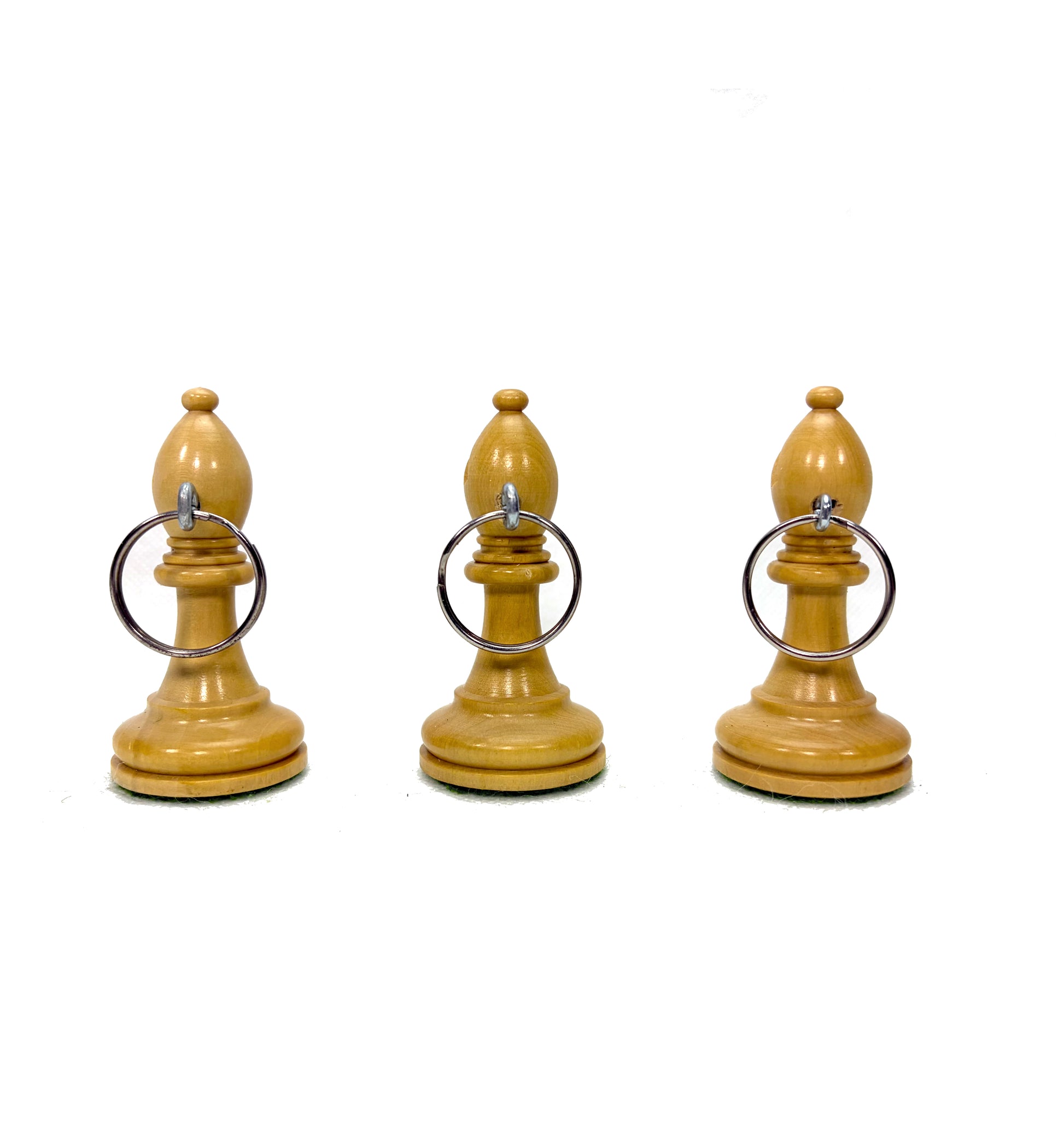 Add a touch of elegance to your keychain with our keychain made from a real chess piece. This unique piece is sourced directly from an original chess set and has been skillfully carved by experienced artisans in India. Each piece is one-of-a-kind and offers a touch of sophistication to your everyday carry. Not only does this keychain make a stylish accessory, it also appeals to all chess enthusiasts who appreciate the beauty and craftsmanship of the game. Whether you're a chess lover or simply looking for a special piece to add to your collection, this real chess piece keychain is the perfect choice.