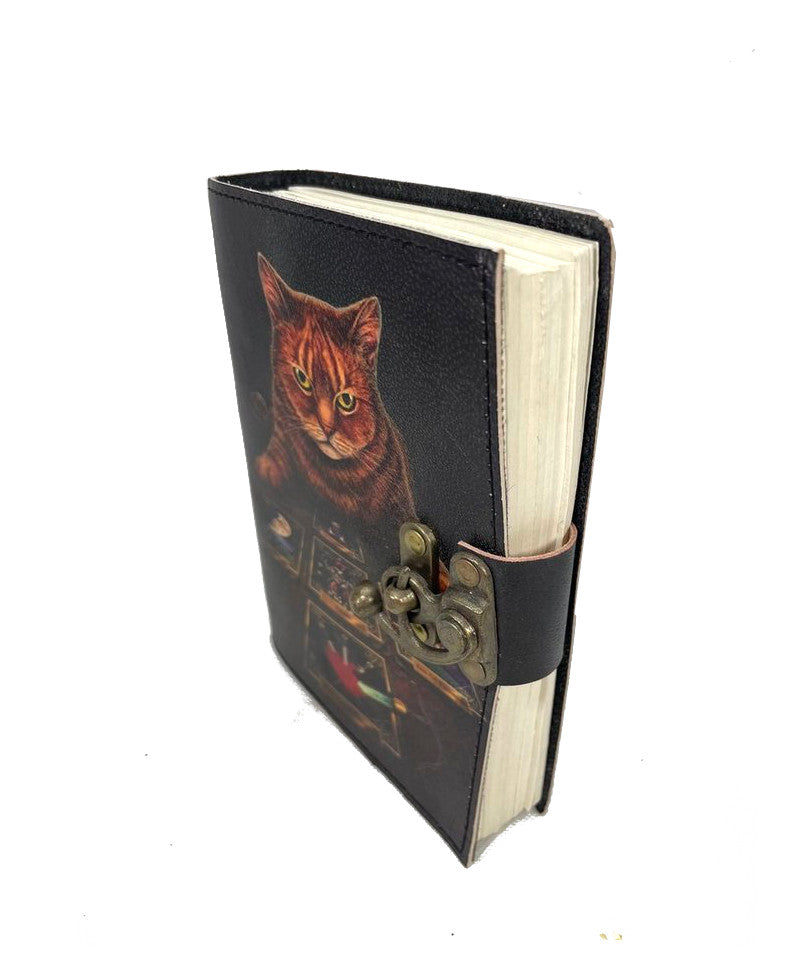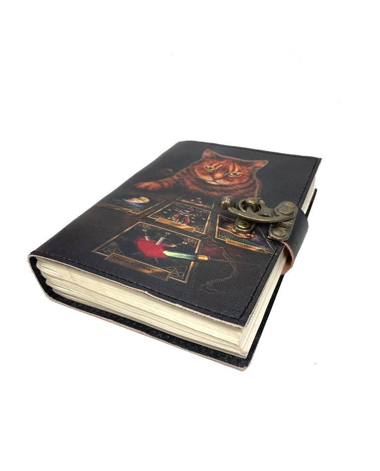 Kot Tarot [M] Notatnik skórzany dziennik szkicownik vintage Handmade Indie