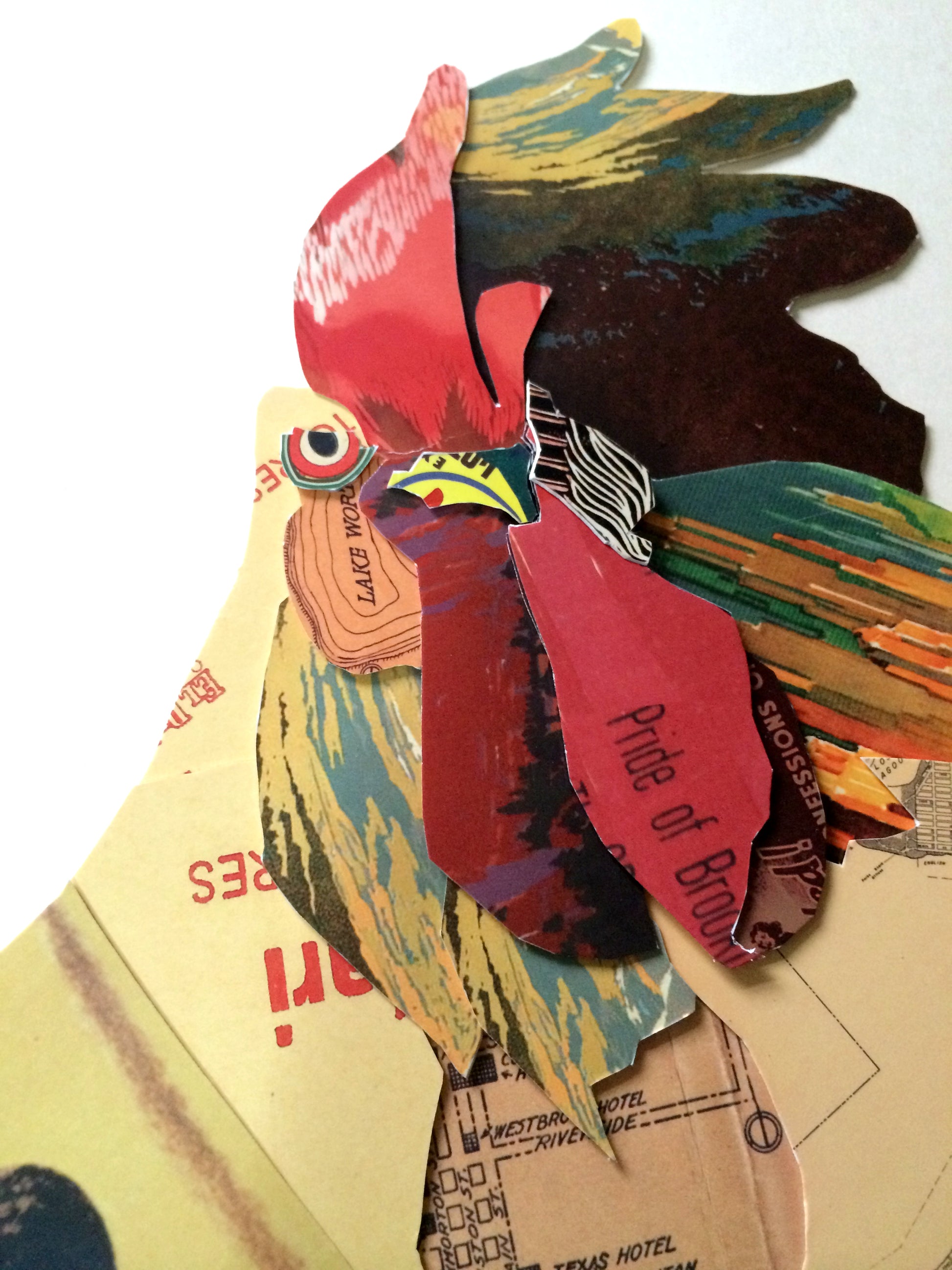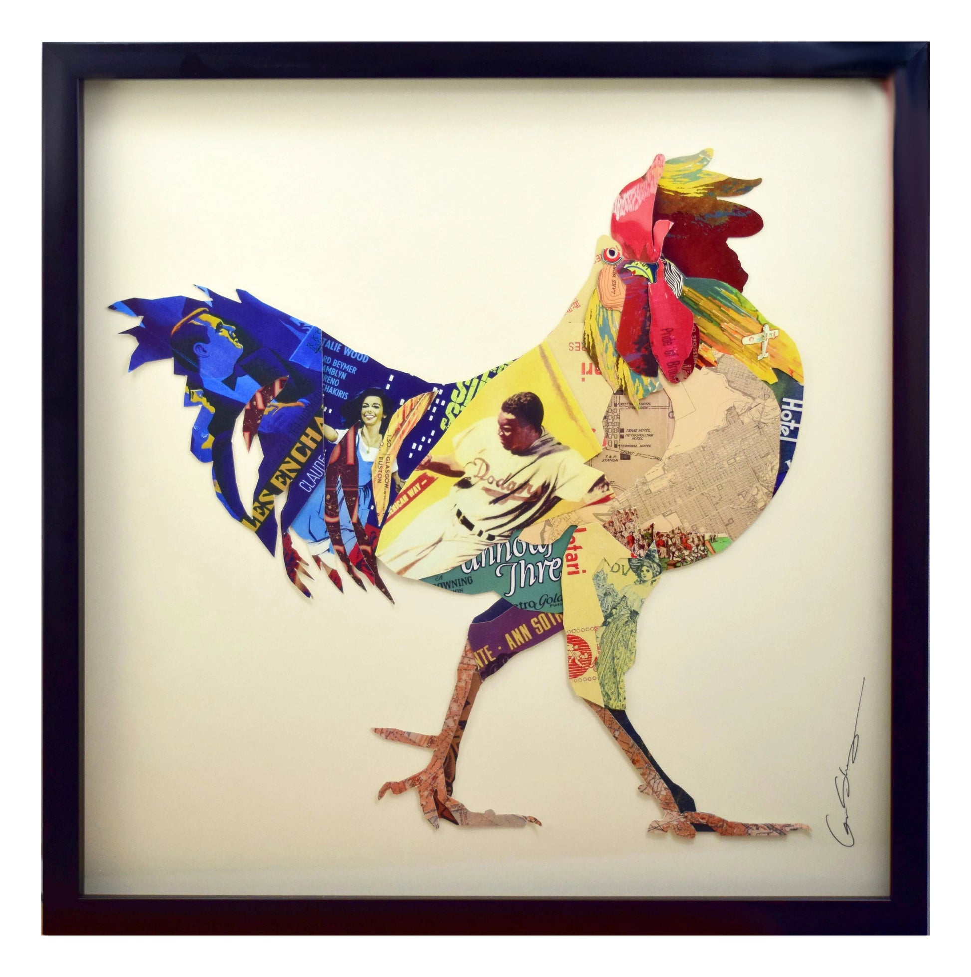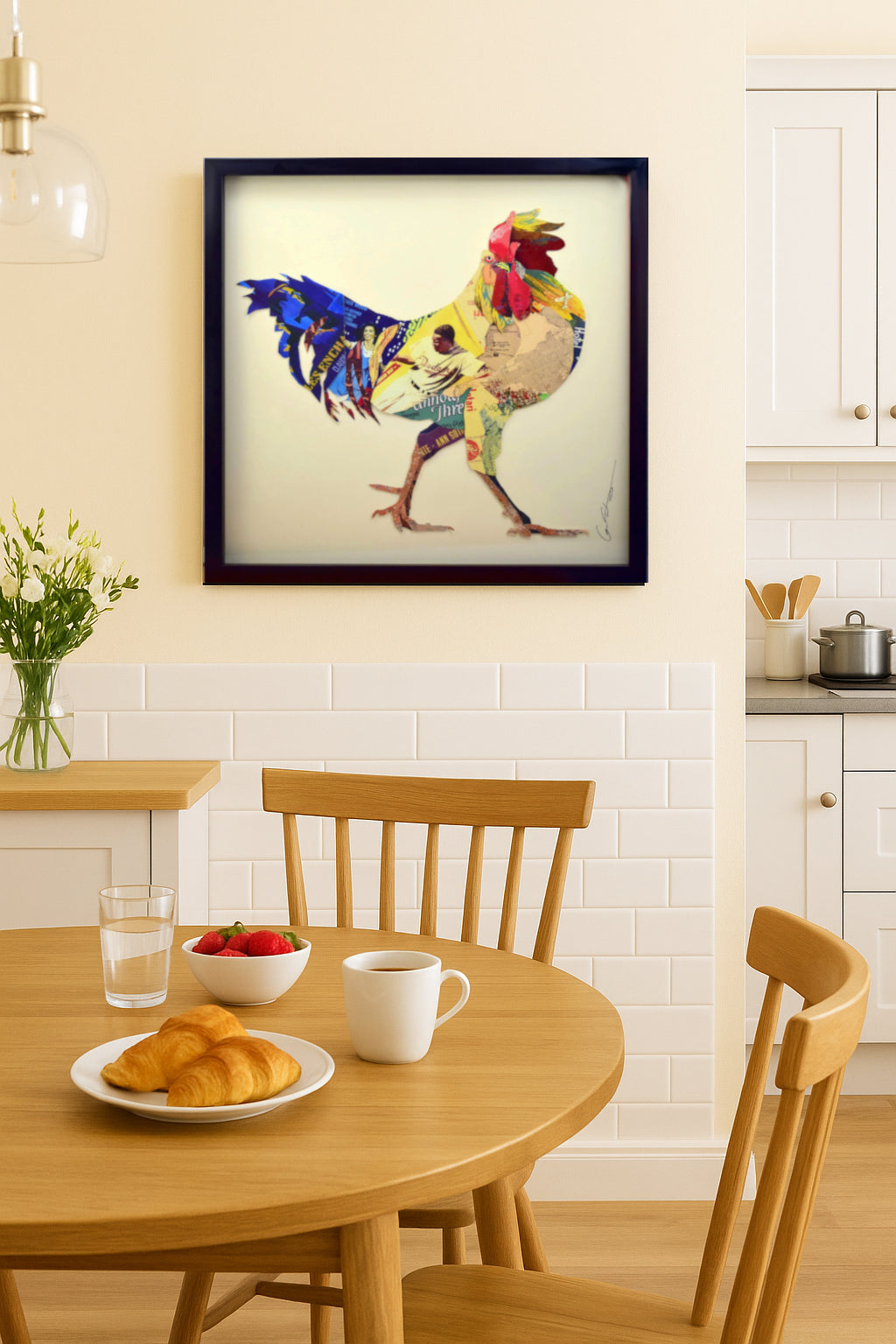 Handarbeit 3D Collage Kunst Frame Art Wand Bild Hahn Gockel Lein Küche