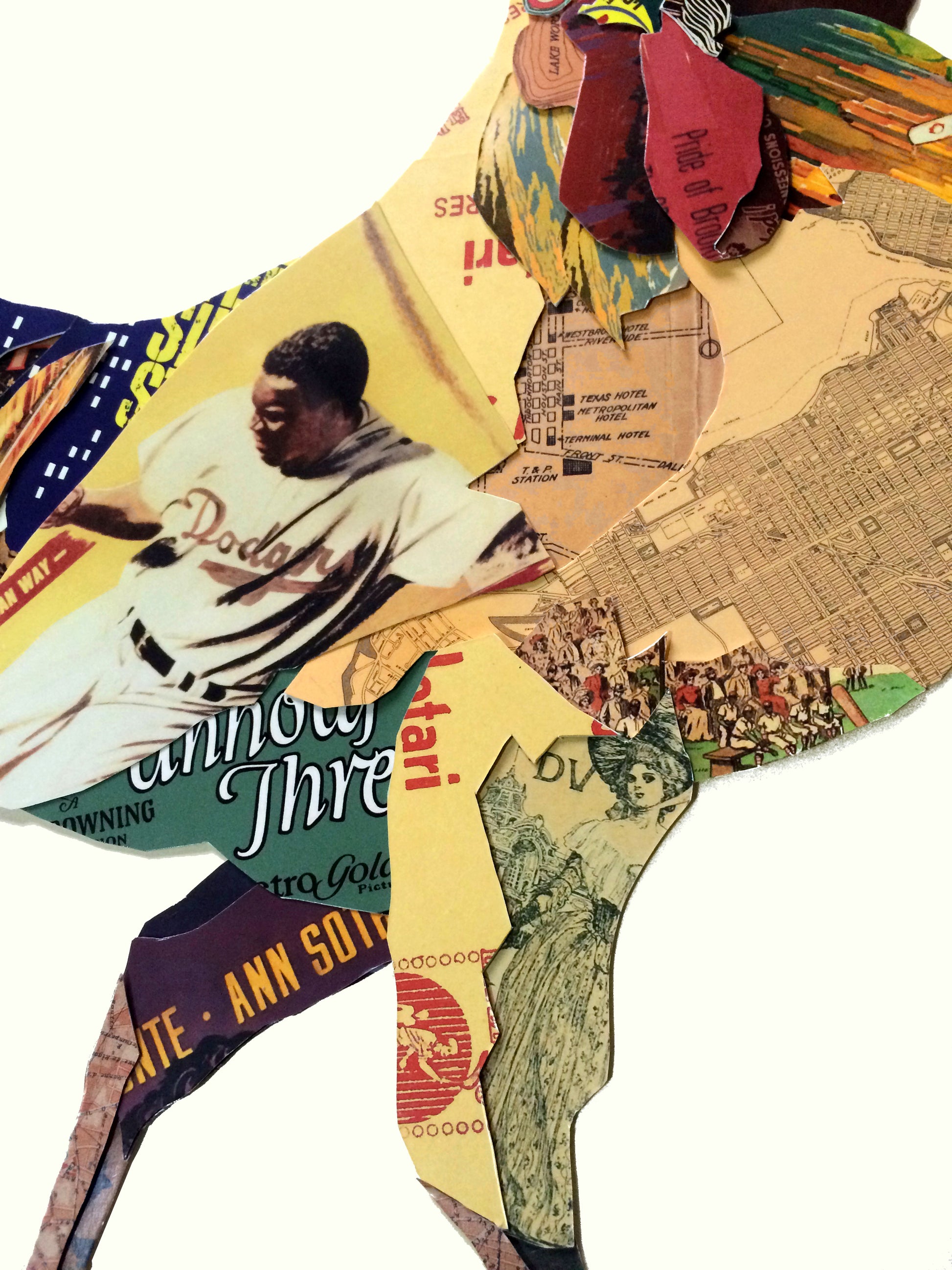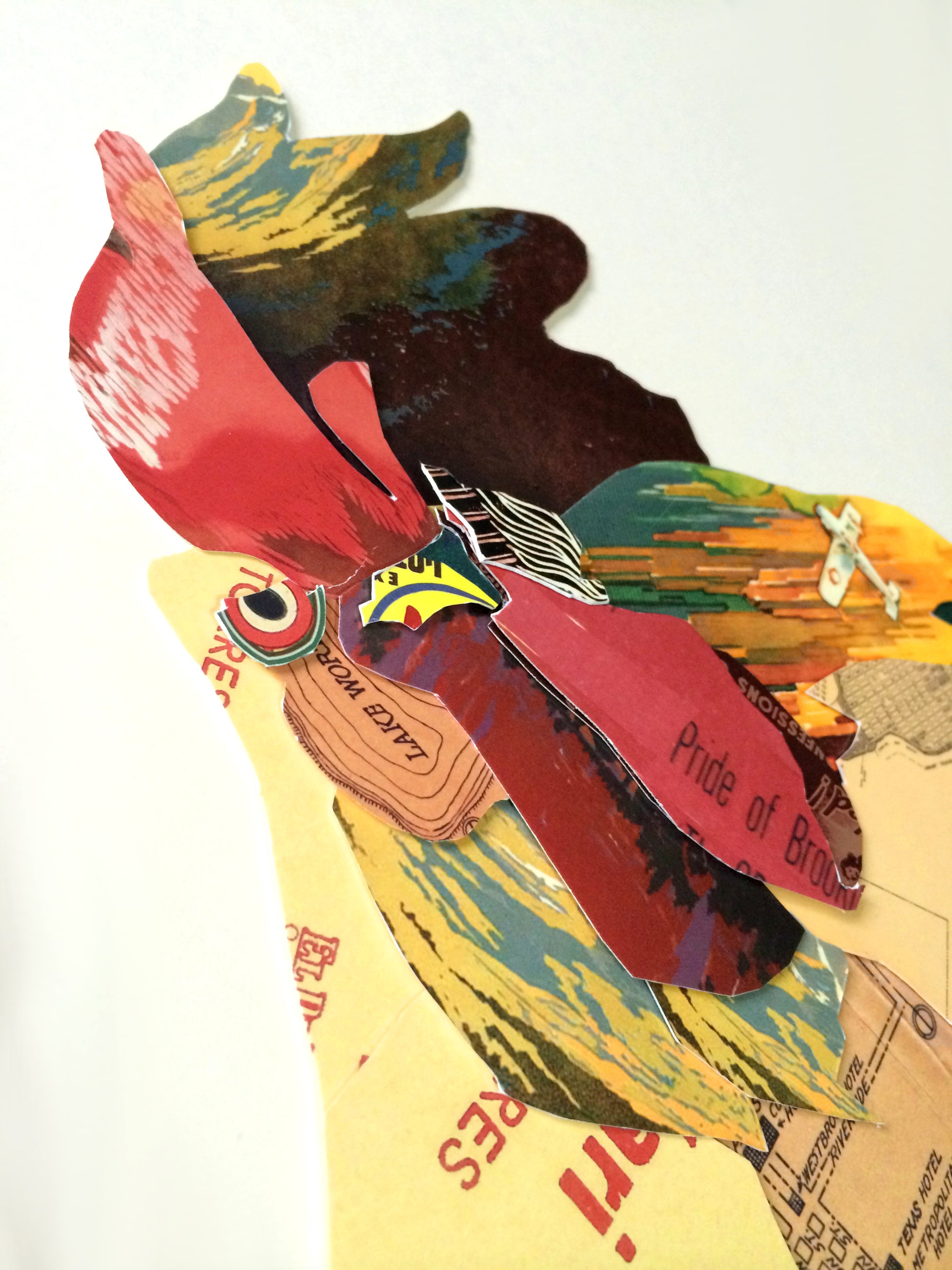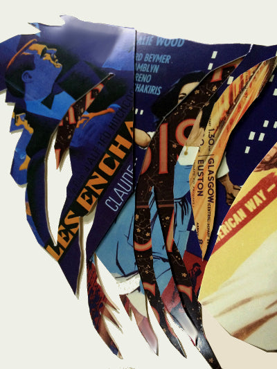 Modernes Design aus alten Magazin-, Postkarten-, Plakaten- und Landkartenausschnitten.