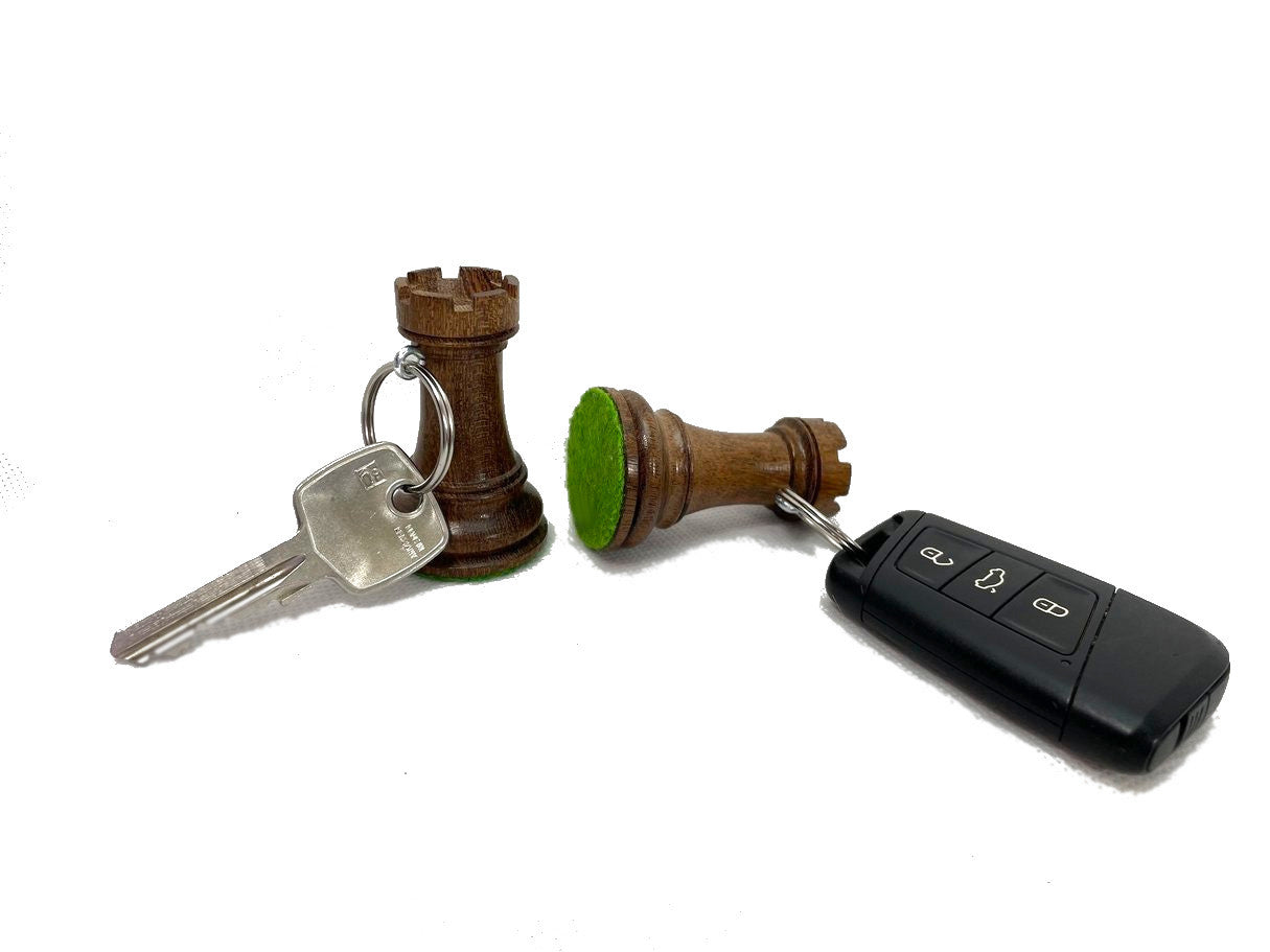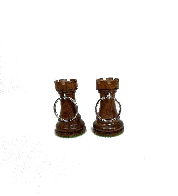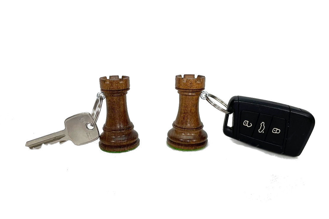 2x Schlüsselanhänger AKAZIENHolz echte Schachfigur Turm Indien Handmade