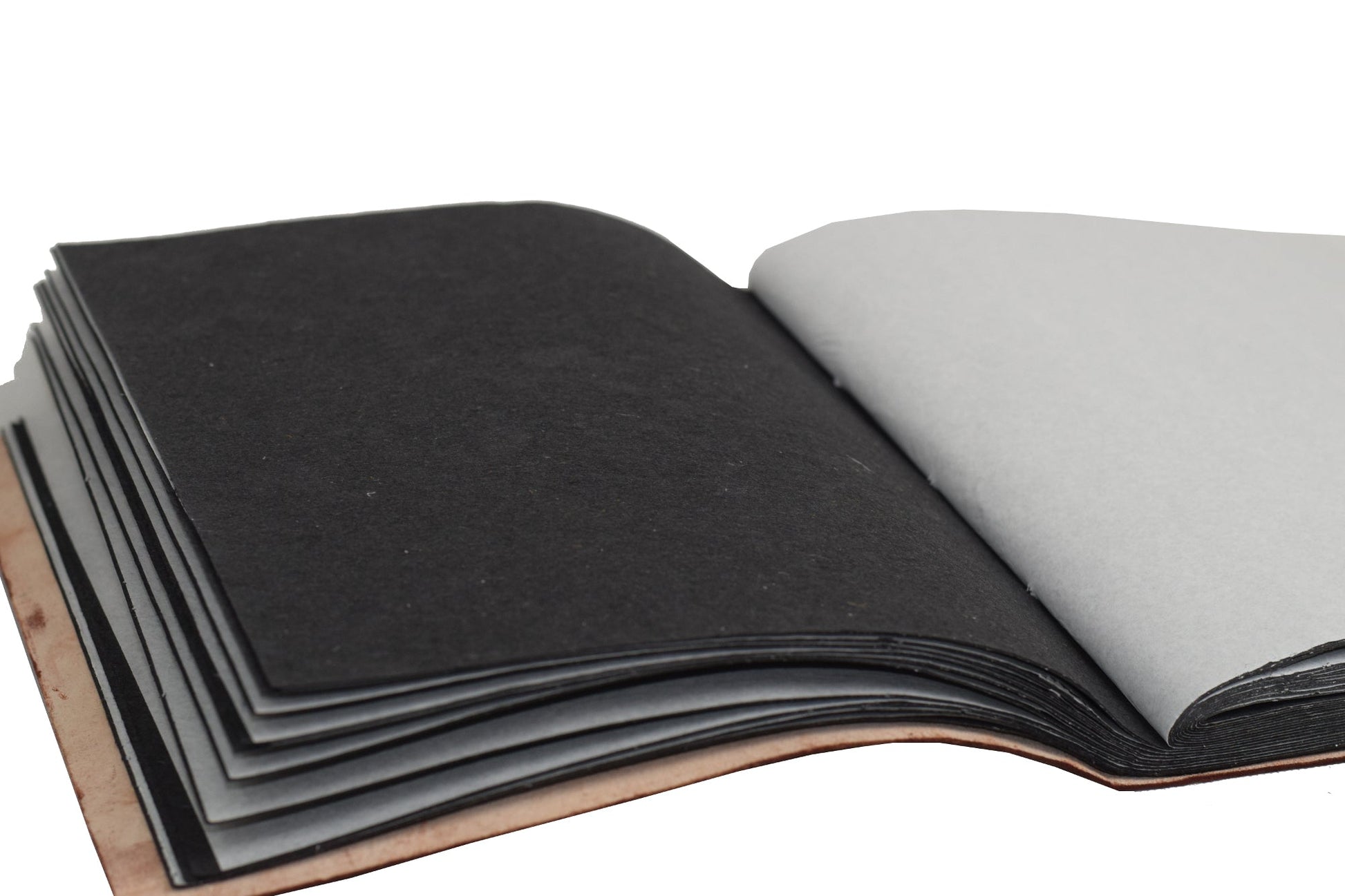 Das Album wird in Handarbeit in Indien hergestellt und jedes Stück ist ein Vintage-Erzeugnis, das auf traditionelle Weise gefertigt wird. Das handgefärbte und handgegerbte Büffelleder kann Farbabweichungen, Verfärbungen und andere Lederunregelmäßigkeiten aufweisen, während das handgeschöpfte Baumwollpapier kleine Unregelmäßigkeiten hat, die ihm einen besonderen Charme verleihen.