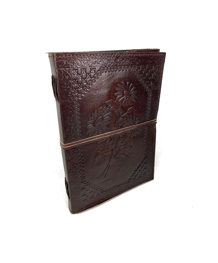Das Buchdesign zeigt eine Prägung von einfachen Wiesenblumen, umgeben von kunstvollen Rahmen und Verzierungen. Jedes Buch ist ein Unikat und wird in traditioneller indischer Handwerkskunst hergestellt. Dadurch kann es zu Farbabweichungen und Unregelmäßigkeiten im Leder und Papier kommen, was jedes Buch zu einem einzigartigen Kunstwerk macht.
