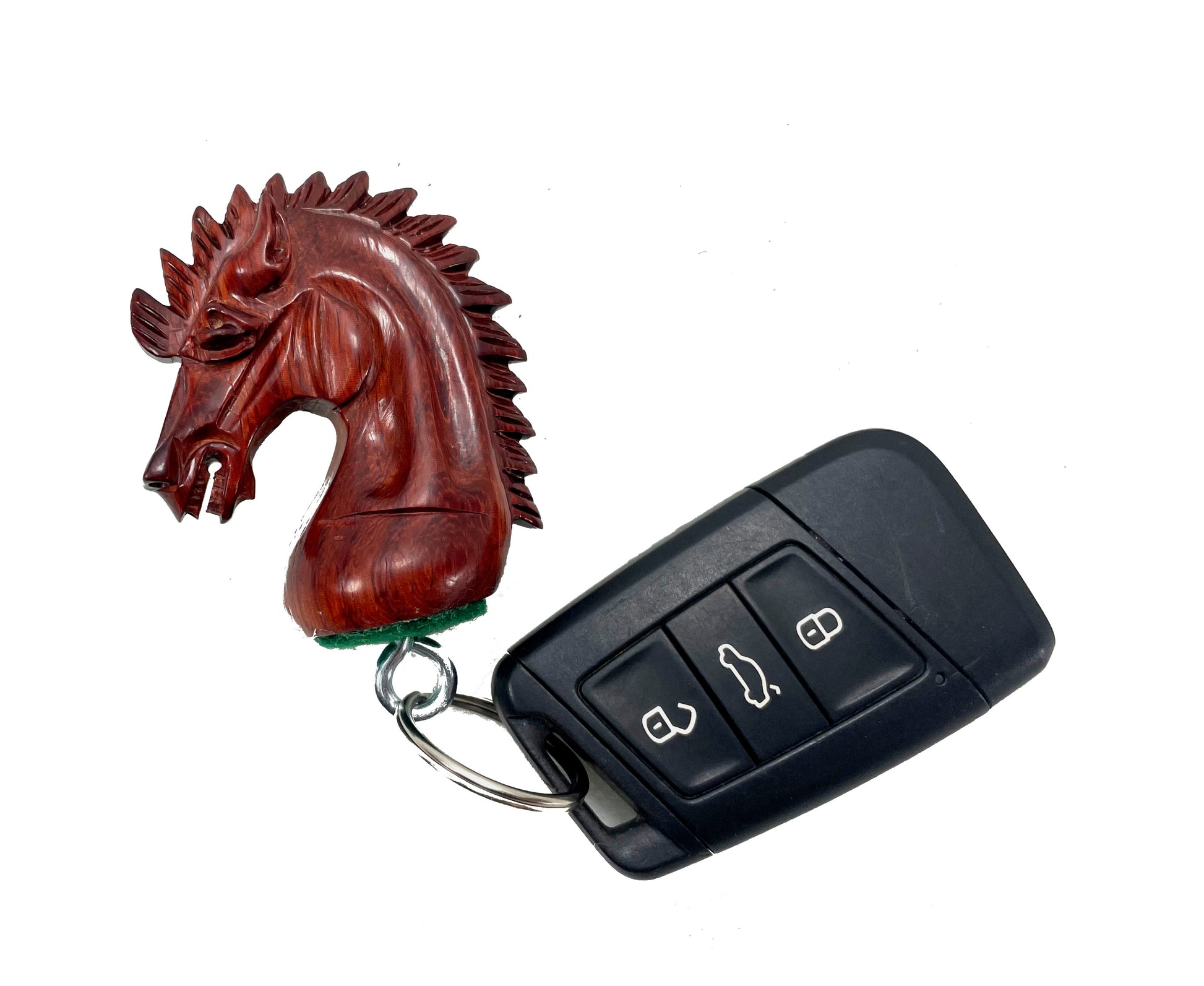 Schlüsselanhänger PADAUK Holz echte Schachfigur Kangi Springer Pferd Indien