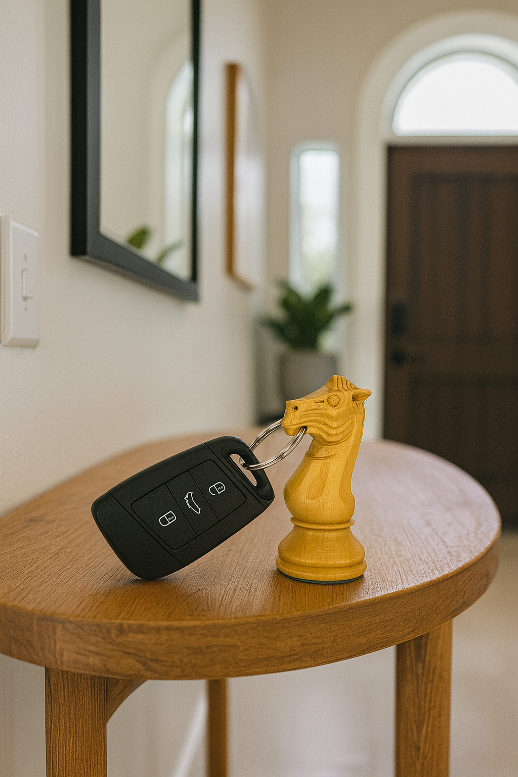 ROOGU Schlüsselanhänger Holz reale Schachfigur Springer Pferd Indien