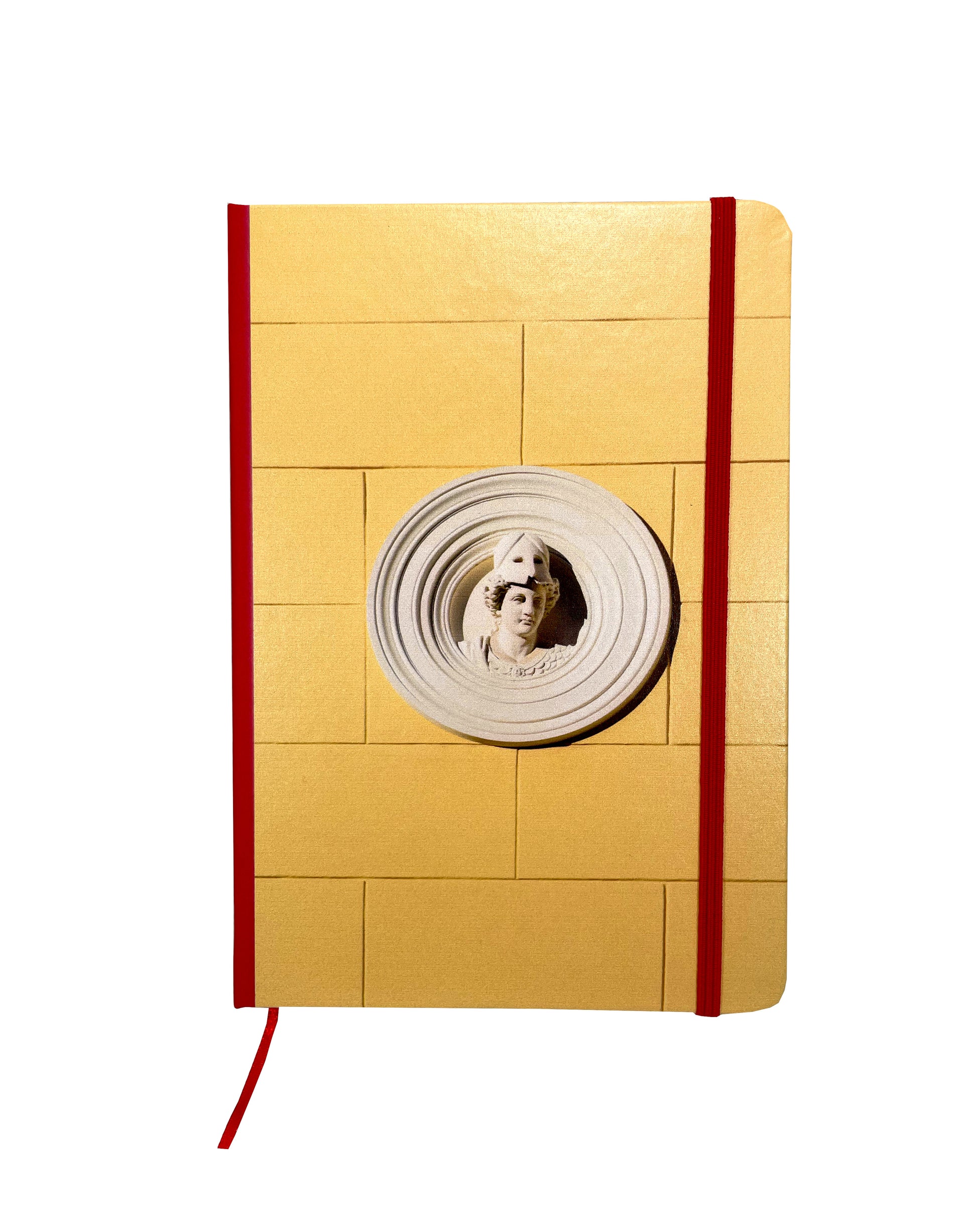 Dieses stilvolle Notizbuch präsentiert eine Originalaufnahme von ROOGU – eine eindrucksvolle Nahaufnahme einer weißen Stein-Reliefmaske auf einer markanten gelben Fassade. Die Figur hebt eine Maske und offenbart ihr Gesicht – ein Symbol für Identität, Ausdruck und das antike Theater Griechenlands.