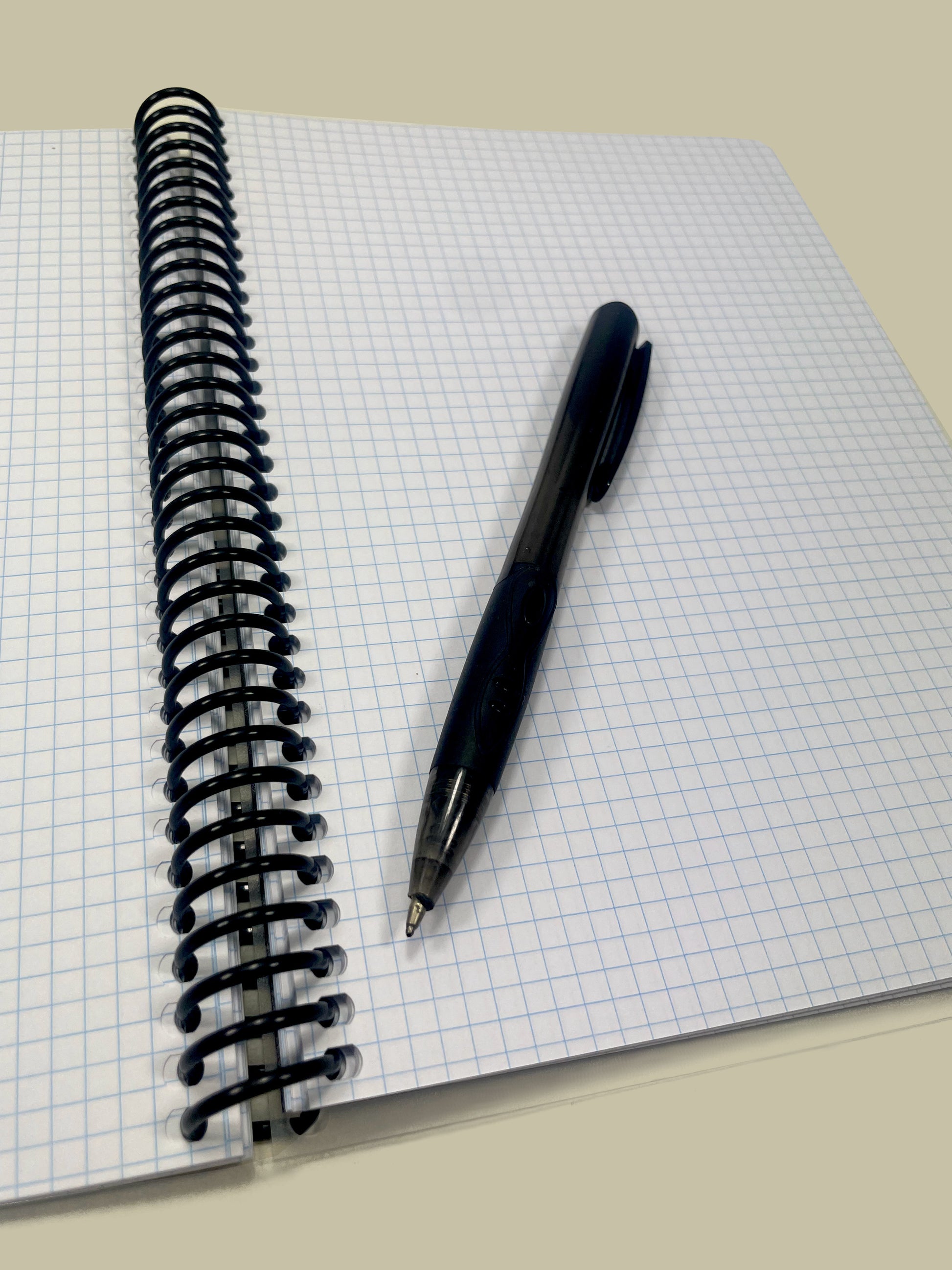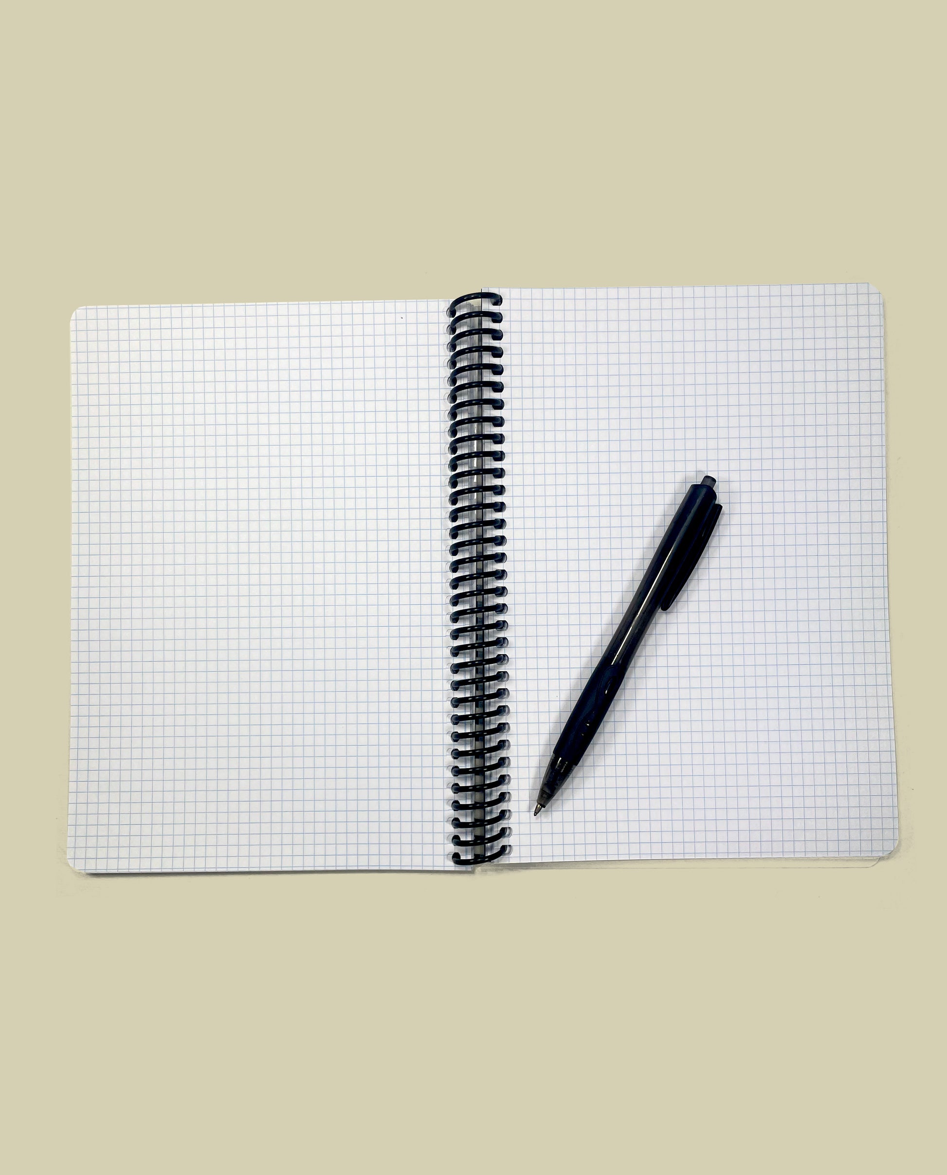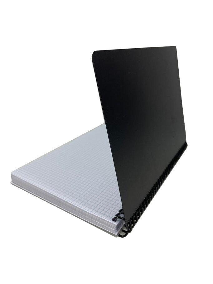 Mit hochwertigem, kariertem Papier (4x4 mm) bietet das Heft Platz für bis zu 100 Blatt, die sich ideal für Notizen, Berechnungen oder Skizzen eignen. Der stabile Wire-O-Einband sorgt dafür, dass das Heft stets flach auf dem Tisch liegt, während die transparente Vorderfolie und die schwarze Rückwand das Heft zusätzlich schützen.