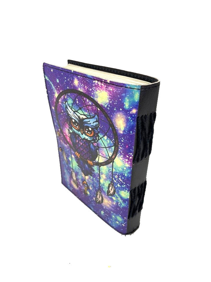 Tauchen Sie ein in die Kombination aus traditionellem Handwerk und moderner Technik mit diesem einzigartigen Notizbuch. Während das Buch aus echtem, handgefertigtem Leder besteht und nach traditionellen indischen Techniken hergestellt wurde, sorgt ein kunstvoller UV-Druck für das atemberaubende Eulen-Design in leuchtenden Lila-Tönen, das einen zeitgenössischen Touch verleiht.