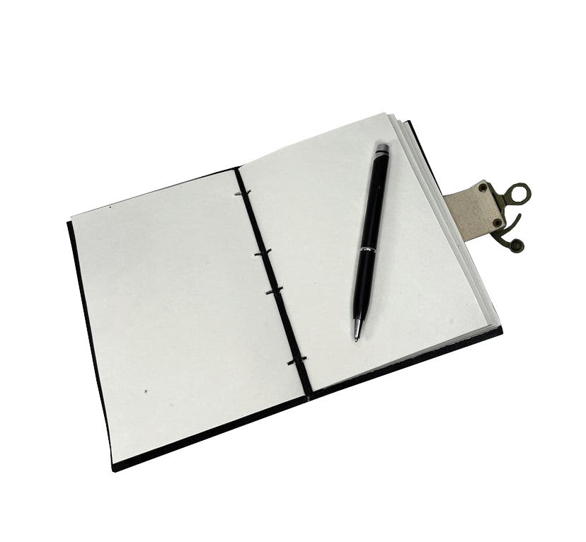 Im Inneren erwartet Sie hochwertiges, handgeschöpftes Baumwollpapier im 12 x 16,5 cm Format. Die dicke, leicht strukturierte Oberfläche ist ideal für Kugelschreiber, Bleistifte, Gelstifte sowie Aquarell- und Ölfarben. Ein edler Messing-Verschluss rundet das Design ab und hält Ihr Notizbuch sicher verschlossen.