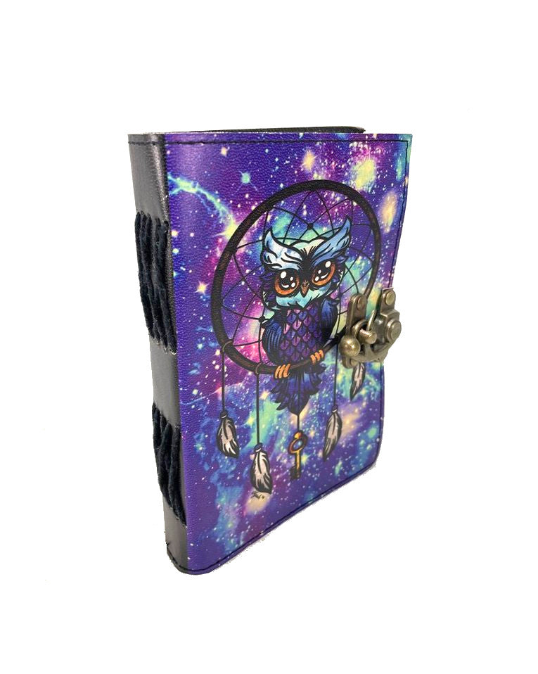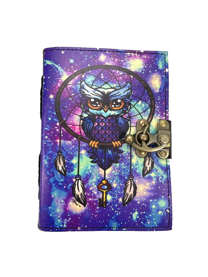 Lila Eule [M] Leder Tagebuch Skizzen Notizbuch Vintage Indien UV Druck Handmade