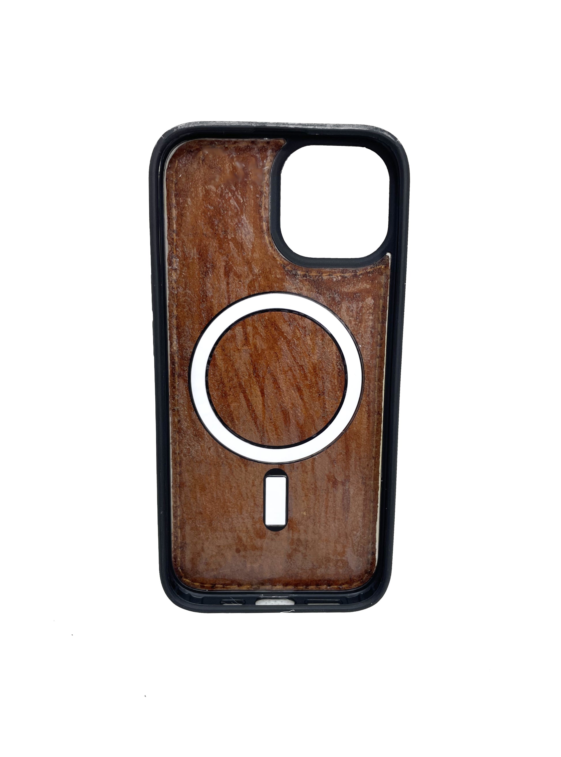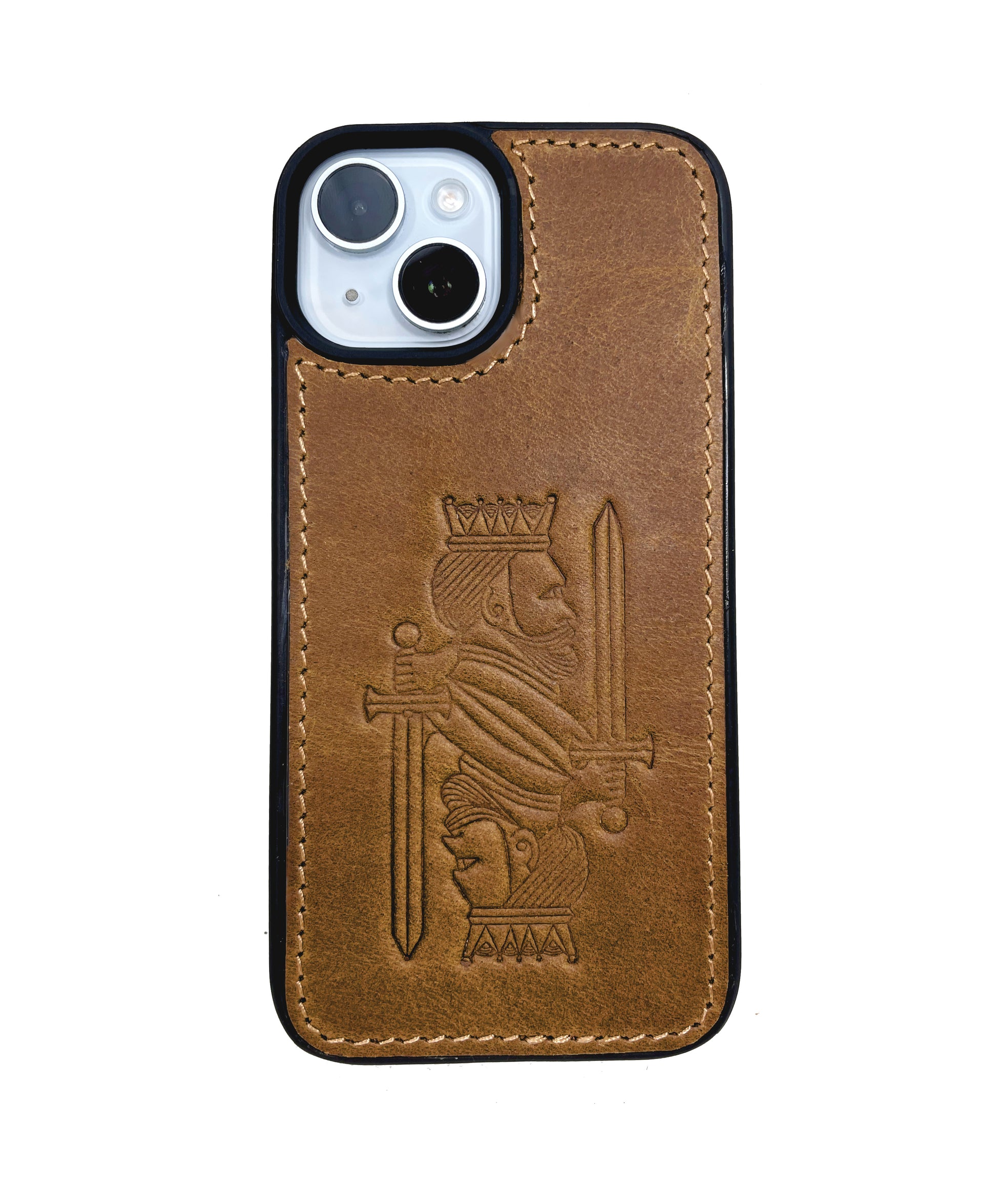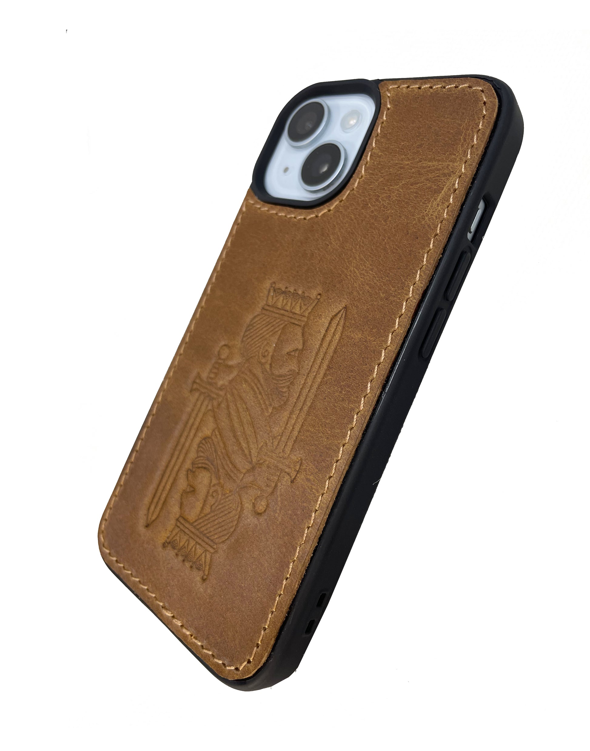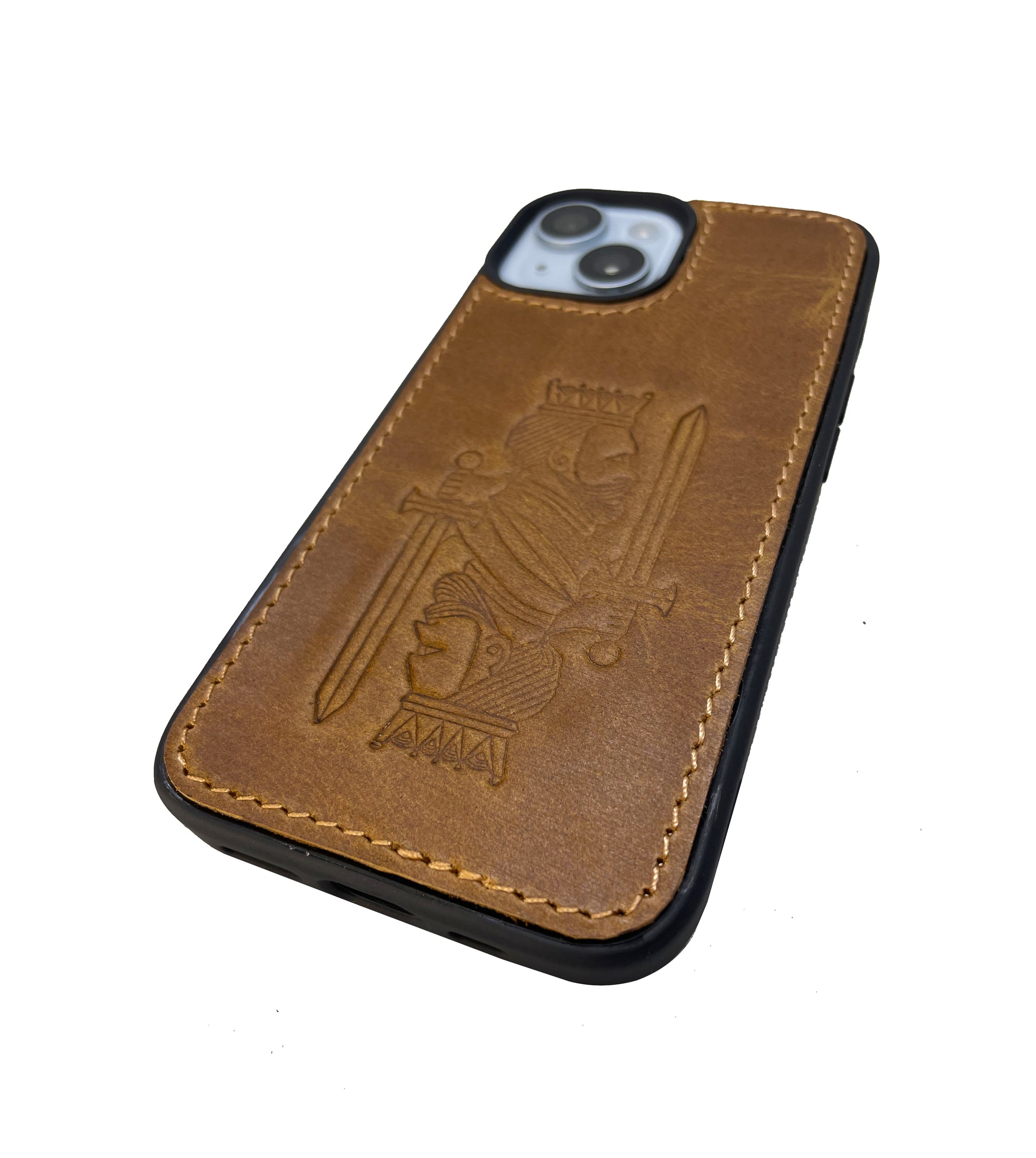 ROOGU Echtleder Handyhülle für iPhone 15 und 15 Pro Kompatibel mit MagSafe Ring Handmade Indien König Prägung