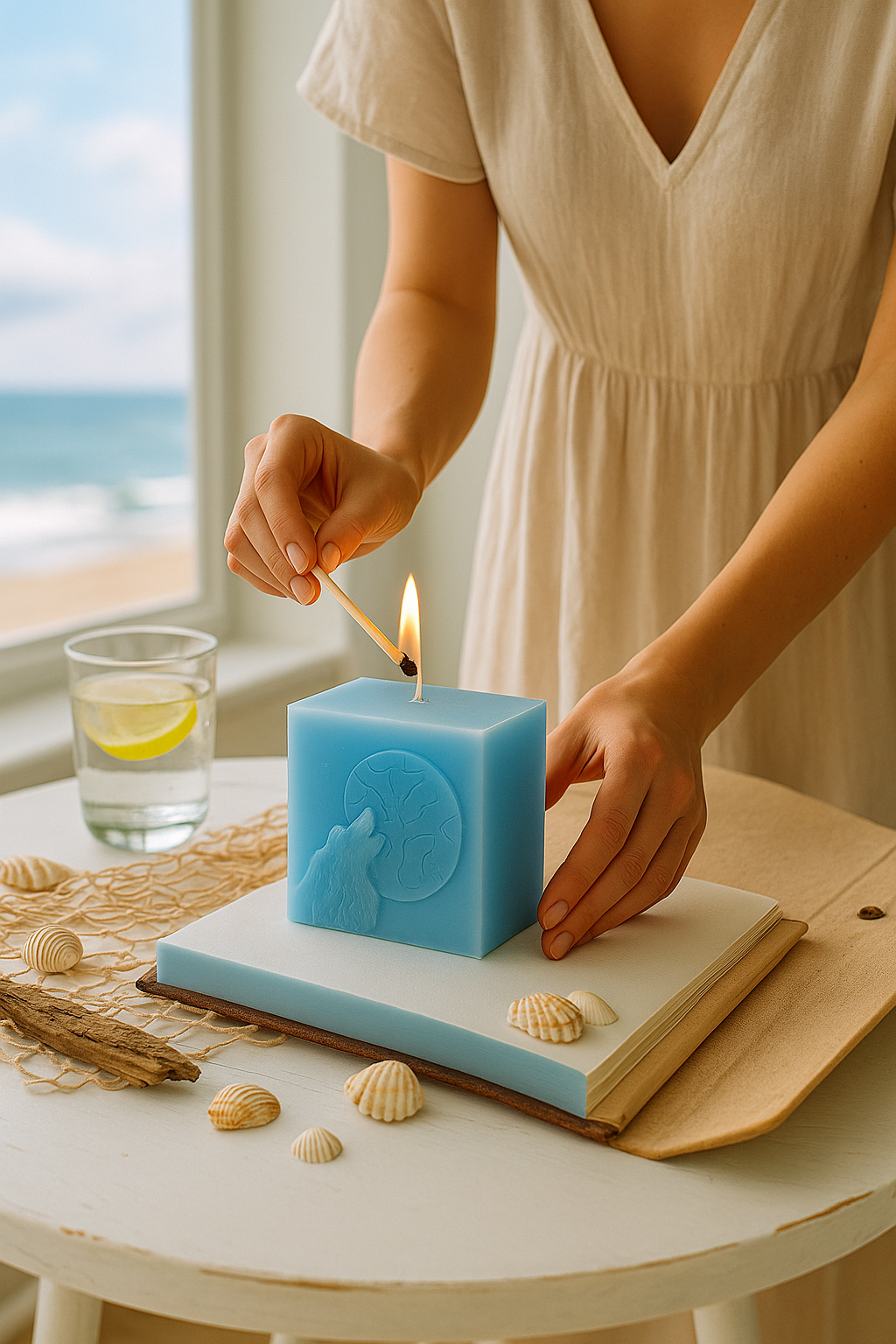 ROOGU Wolf Mond Duftkerze Meeresbrise Blau Himmel Badezimmer Cube Candle