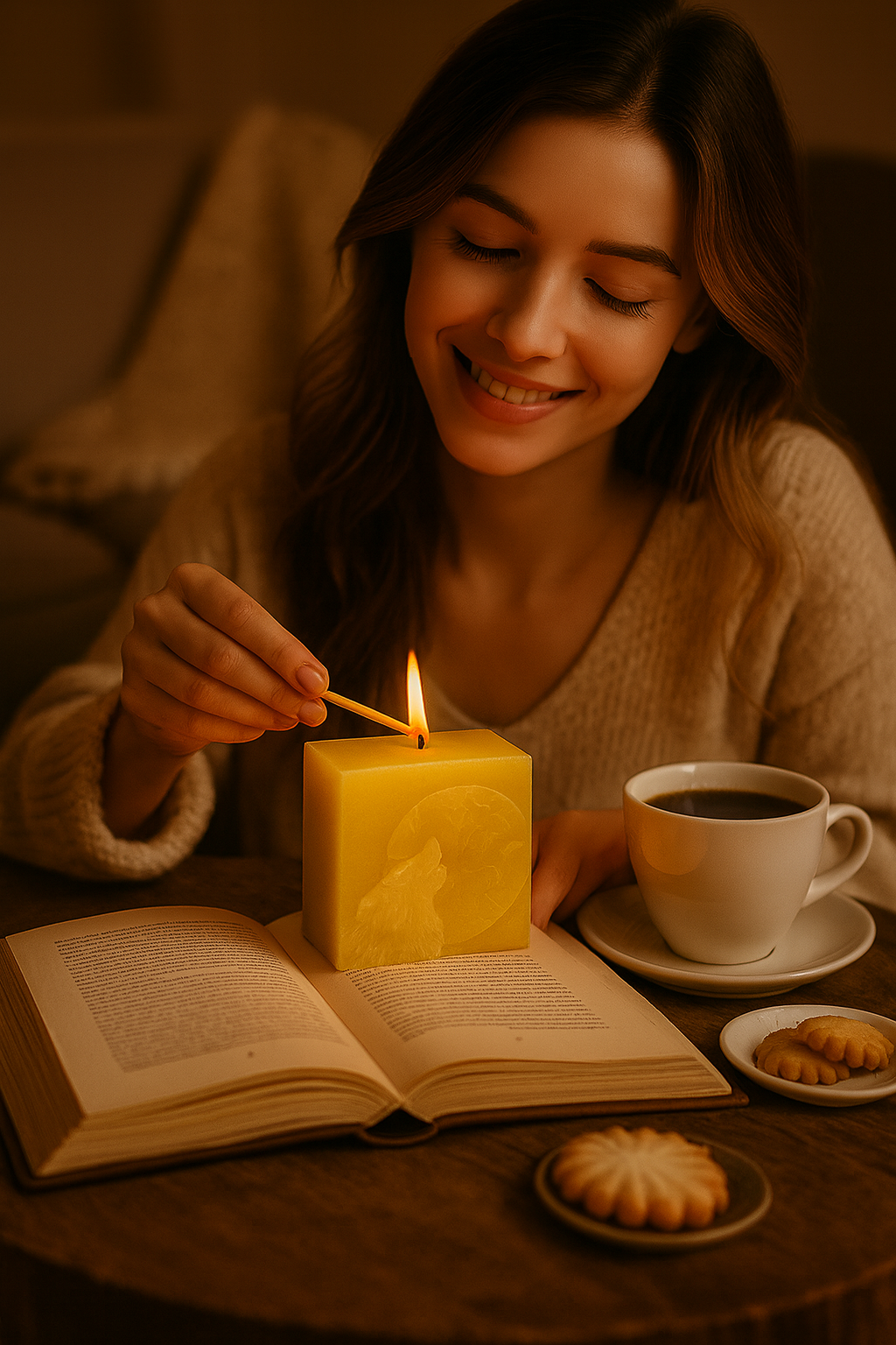 ROOGU Wolf Mond Duftkerze Vanilla Zitrus-Gelb Cube Candle