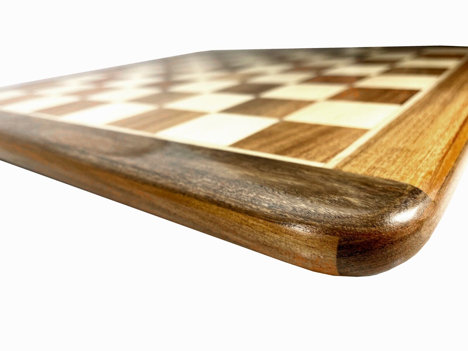 Schachbrett 16'' Akazienholz Buchsbaum Runde Ecken Kanten Handmade Indien