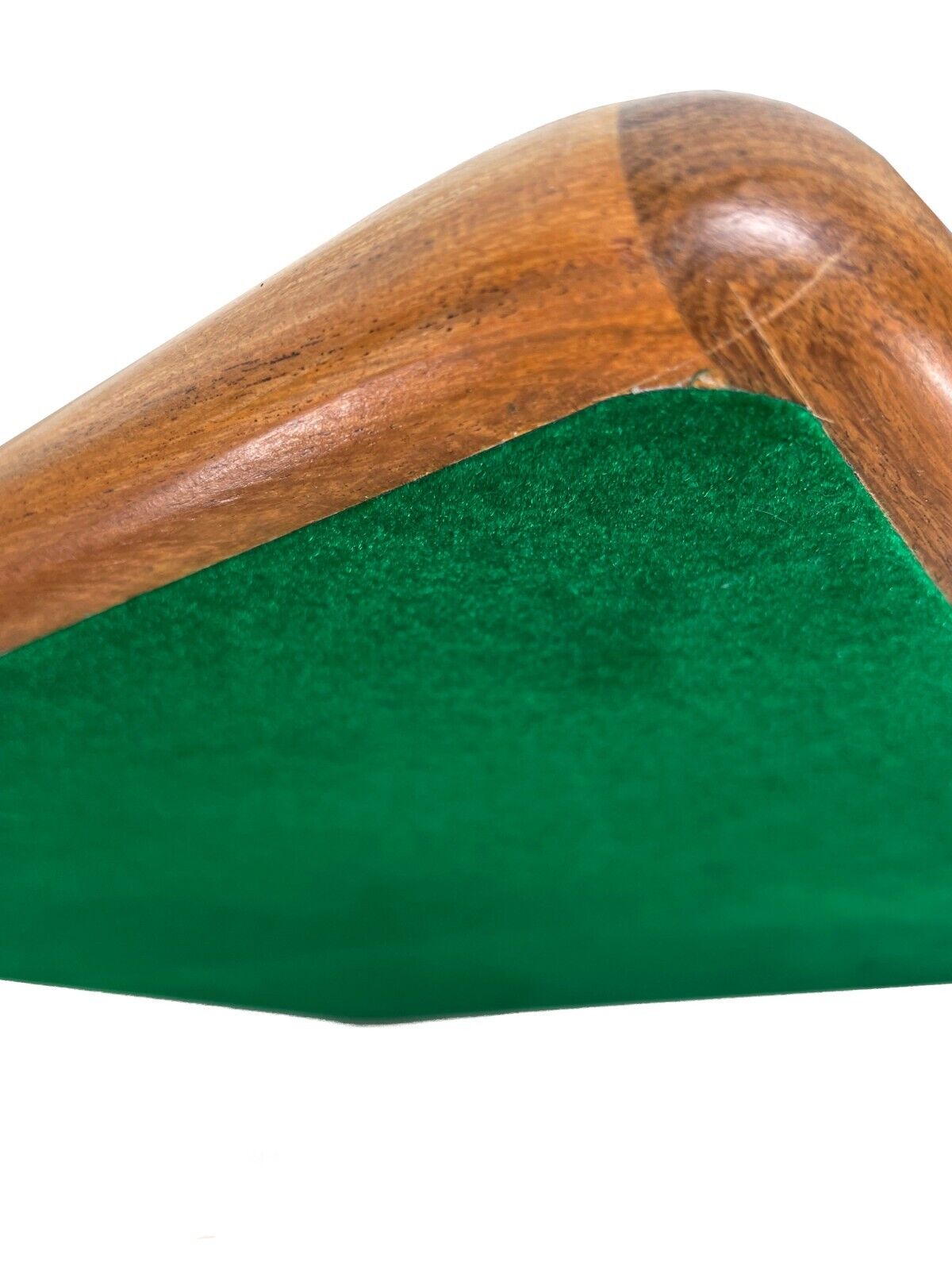 Das Schachbrett verfügt über gerundete Ecken und Kanten, die ihm ein elegantes und raffiniertes Aussehen verleihen. Es ist mit einer Filzunterlage in Grün ausgestattet, das Schachbrett stabilisiert und ein rutschfestes Spiel ermöglicht.