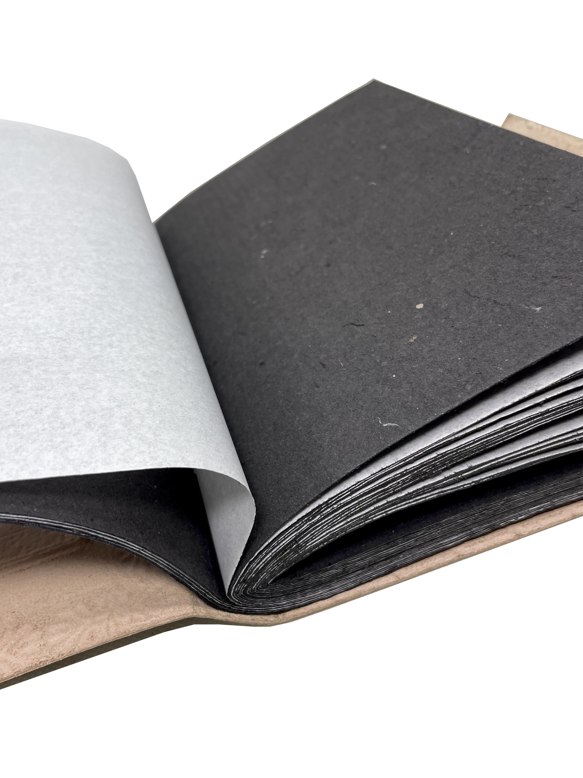 Mit 80 schwarzen Seiten aus handgefertigtem und baumfreiem Baumwollpapier bietet dieses Album viel Platz für Ihre Bilder und Geschichten. Durch die transparenten Trennblätter können Sie Ihre Fotos einfach einlegen und schützen.