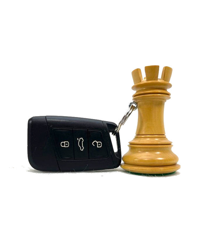 ROOGU Schlüsselanhänger Holz echte Schachfigur Turm Handmade Indien